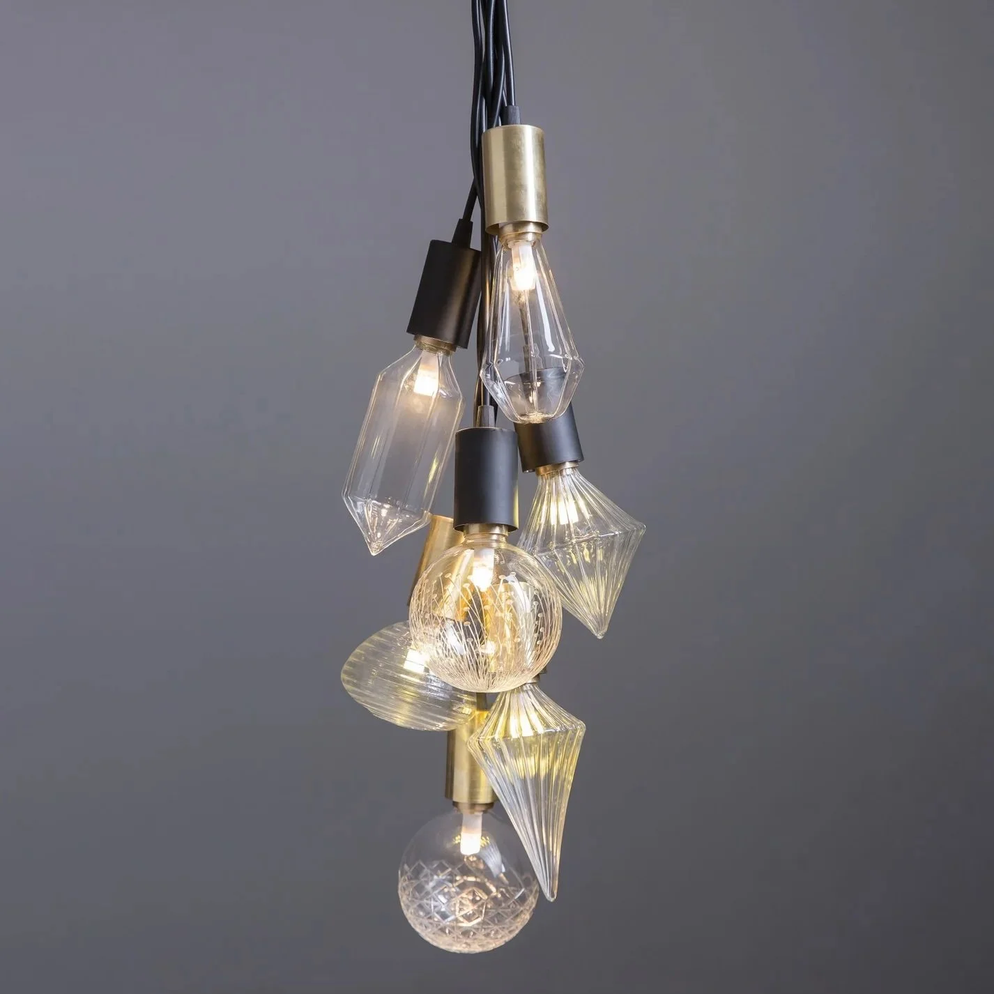Dandera Lights is a set of seven LED glass blown light bulbs. Driven by sustainability and minimalism, each bulb is uniquely hand carved by crafted artisans and comes with brushed brass/opaque black lamp holder.